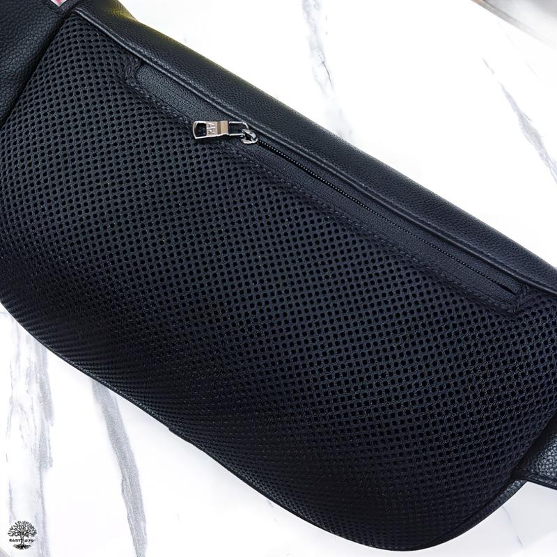 腰包採用耐用且柔軟的材質製成,配有拉鍊和可調節肩帶。