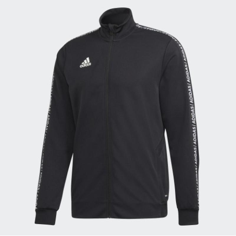 一般版型,全開式拉鍊搭配羅紋立領,100% 再生聚酯雙面針織布,足球暖身外套,吸濕排汗AEROREADY,羅紋袖口和下襬,此產品採用高機能再生材質Primegreen 製成,並未使用原生聚酯纖維。