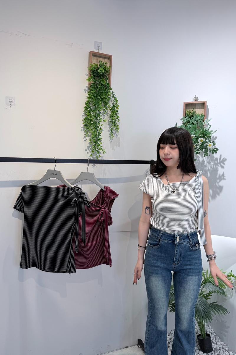 預購 FT25-韓系斜肩附綁帶多穿式上衣