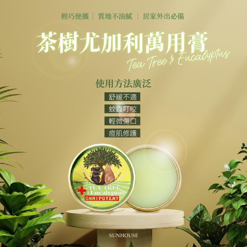 4082212-SUNHOUSE 茶樹尤加利精油萬用霜18ml(外盒)
