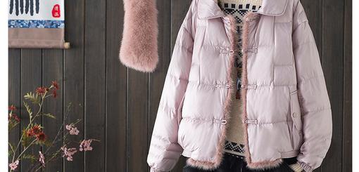 820-水貂毛門襟狐狸毛領羽絨服-粉色(M,L,XL可穿)