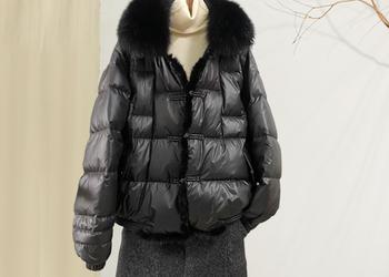 823-水貂毛門襟狐狸毛領羽絨服-黑色(M,L,XL可穿)