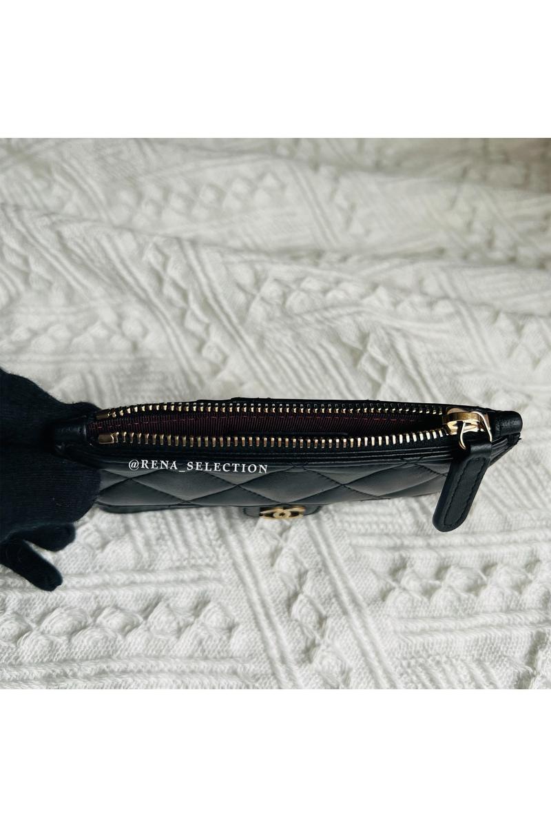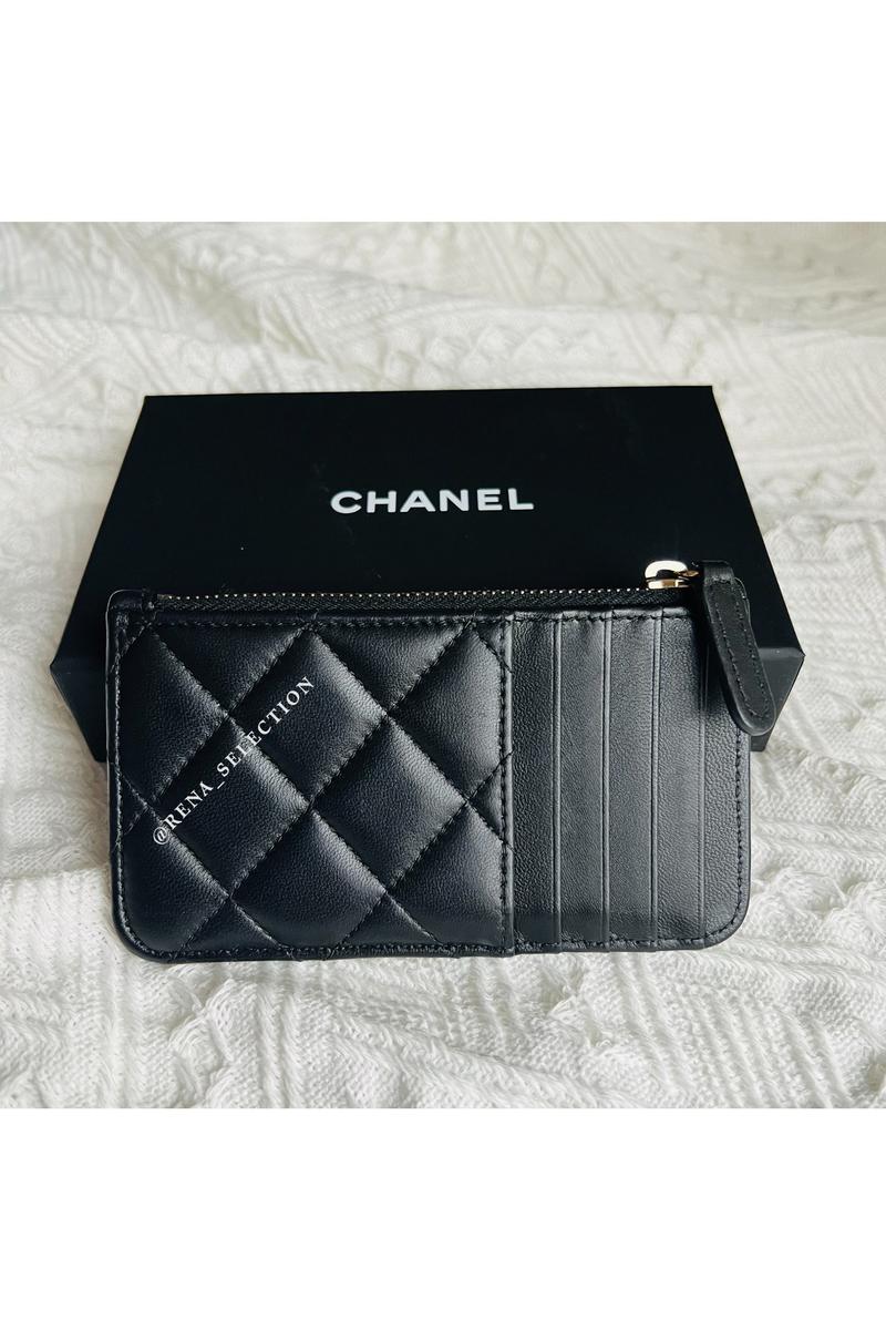 Chanel cf小羊皮一字拉鍊零錢卡包 金扣