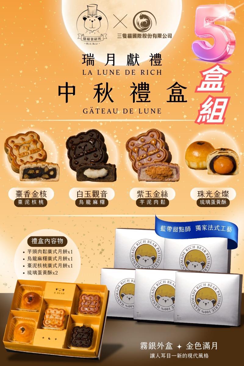 0920【瑞瑞食研所x中秋月餅禮盒5盒入】免運
