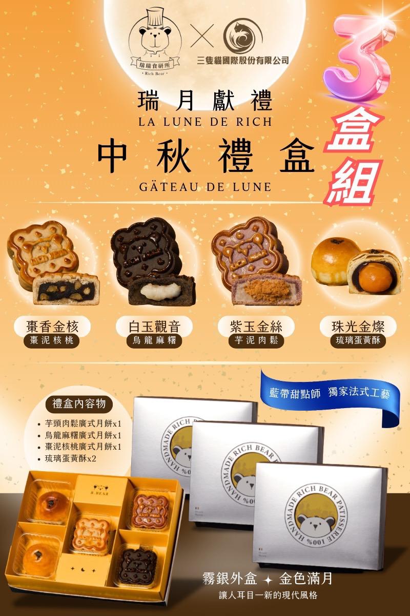 0920【瑞瑞食研所x中秋月餅禮盒3盒入】