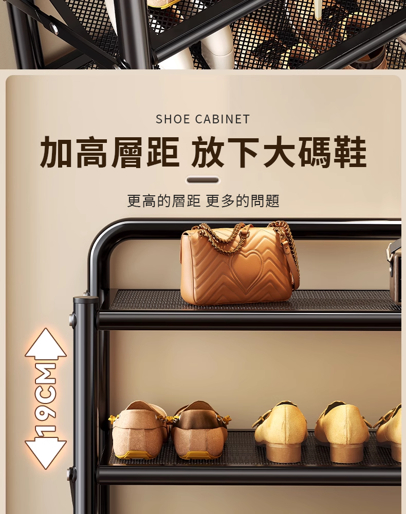 层高自由调节,轻松收纳高跟鞋/运动鞋/短靴