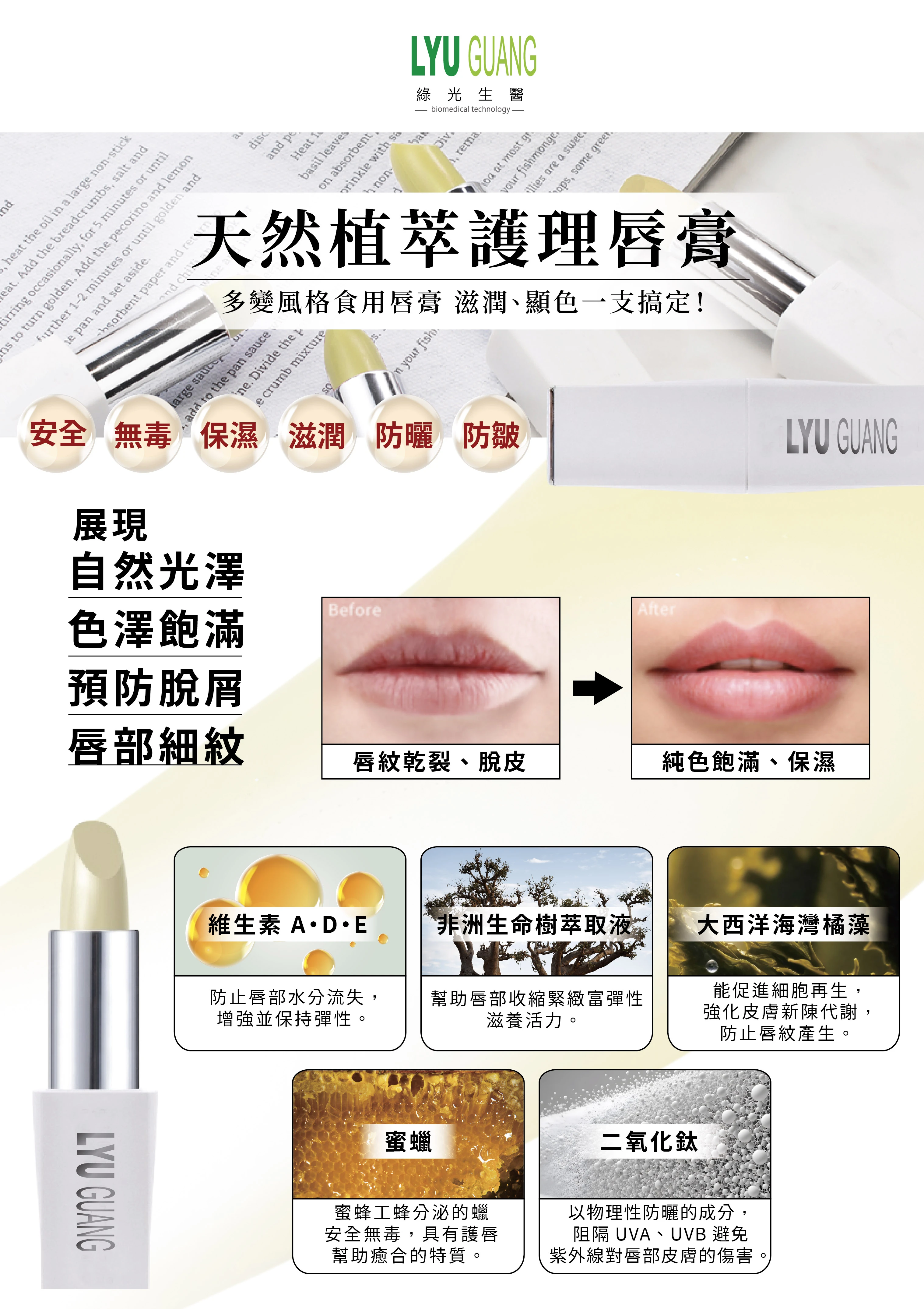 🔶 維生素 A・D・E : 防止唇部水分流失,增強並保持彈性