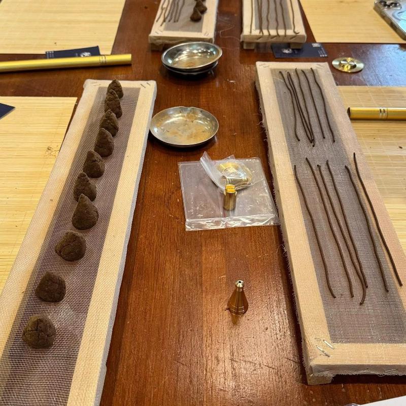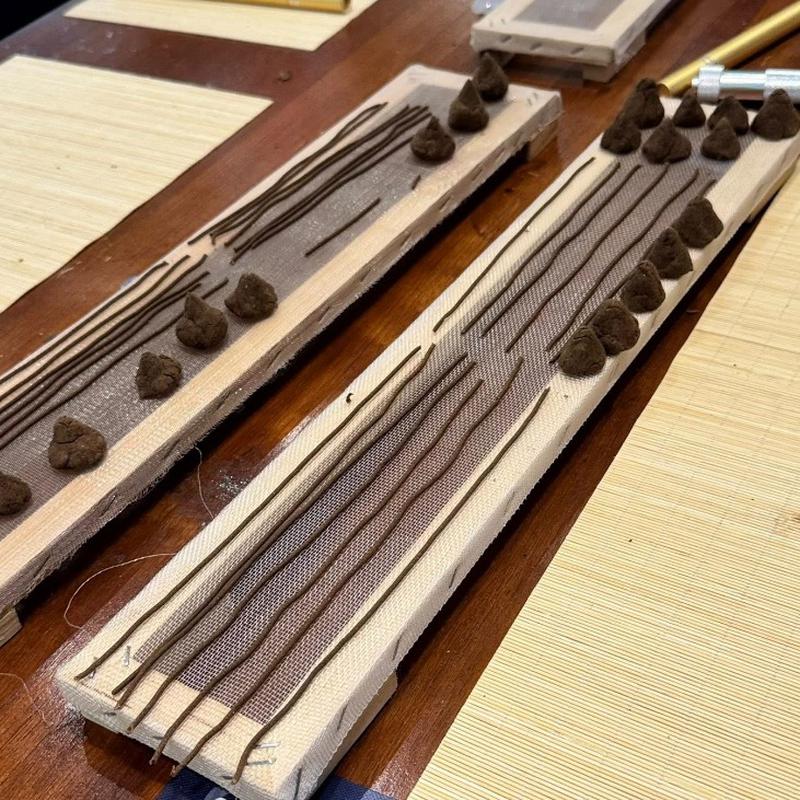 你可以搓成長條線香,也可以捏成圓餅狀,甚至壓模成喜歡的形狀(例如香椎、香塔)