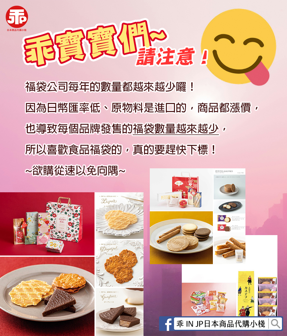 📢 11/30前 預購¥5,500以上福袋享免台運優惠