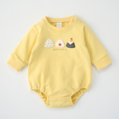✅經典日式小飯糰刺繡,搭配活潑亮黃色,襯托寶寶好氣色
