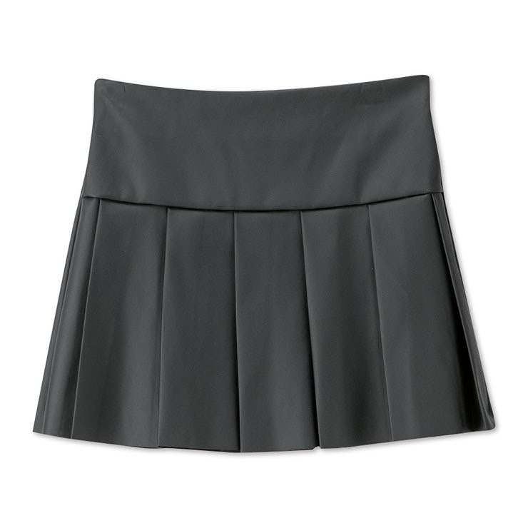 ✅寬鬆皮外套內搭短版衛衣與百褶短裙,配上過膝長靴,將甜美與酷帥平衡得恰到好處