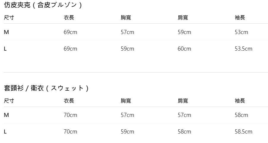 ■ 內容:仿皮夾克、衛衣、毛衣、長褲、裙子、針織帽 (內徑58高度19cm)、收納包 (17x15x8cm)