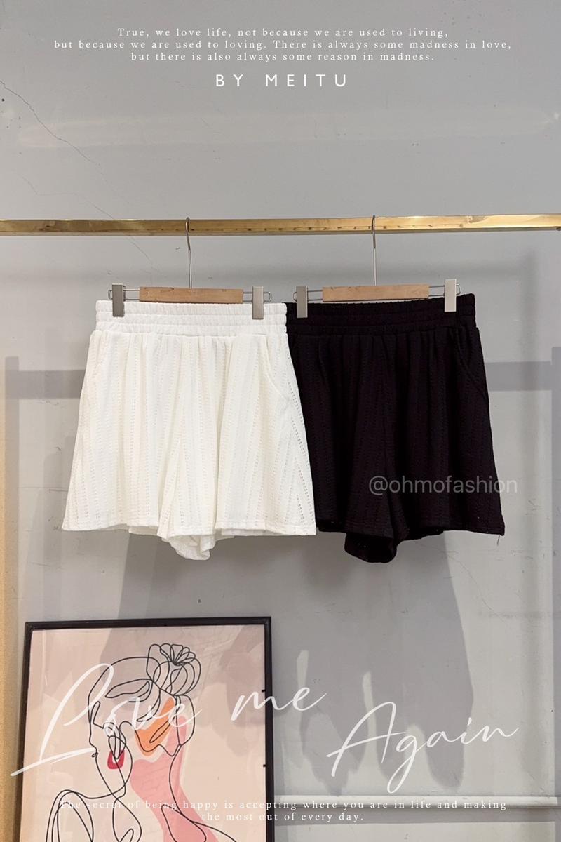 【OhMo商城派對】S B1122 高磅洞洞麻棉針織A字巨顯瘦短褲