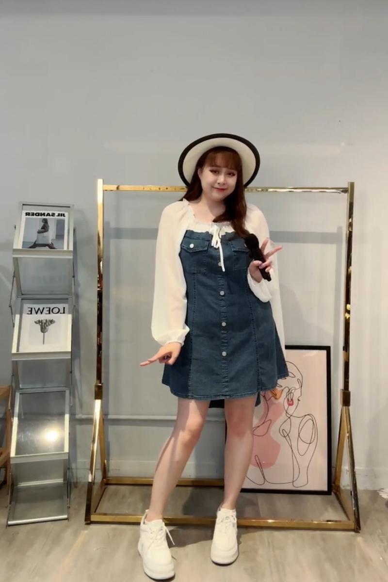 【棄單大出清】S B1193 涼感丹寧牛仔拼接芙蓉雪紡紗連身洋
