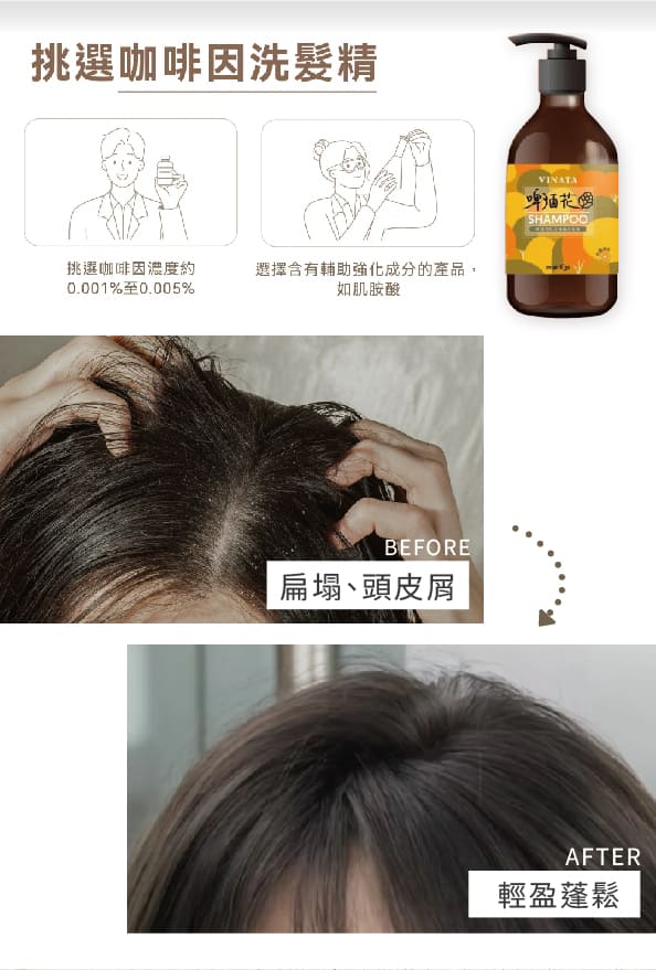 咖啡因:給予頭皮能量,喚醒蓬鬆與活力感。