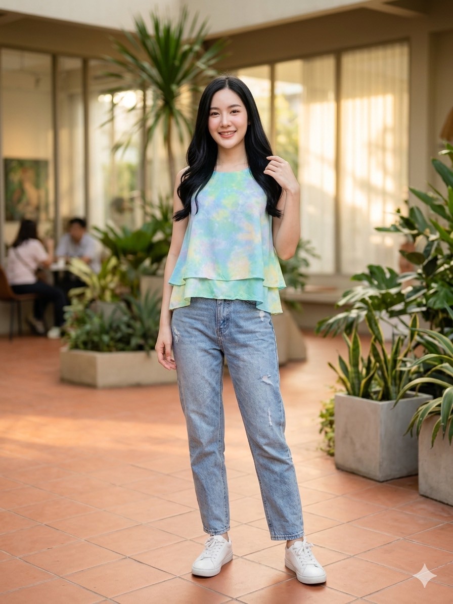 搭配牛仔褲、短褲或白色長褲都能展現清爽風格,