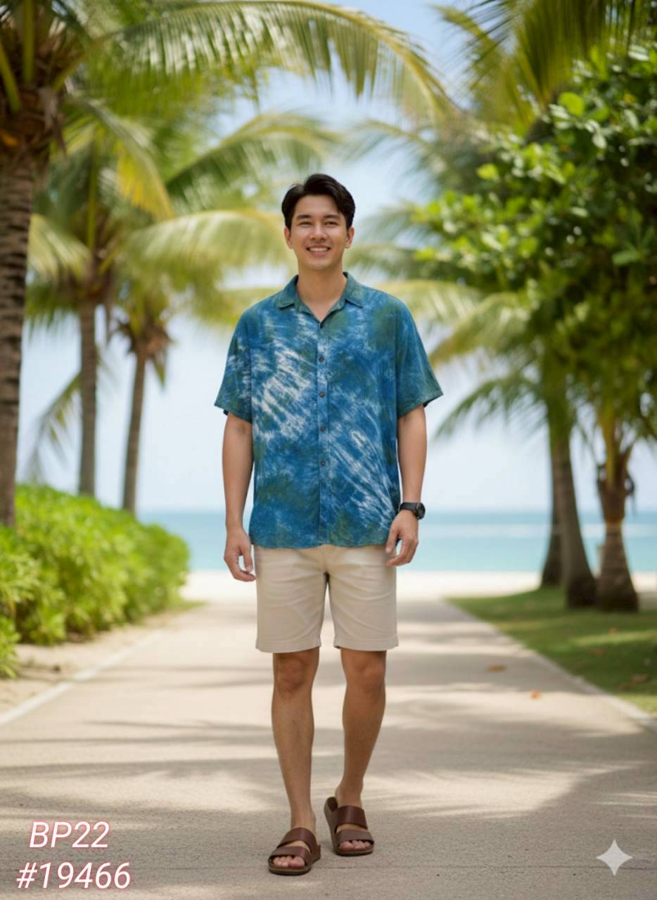 BP22-冰絲超帥折領排扣短袖上衣(男女可穿)#19466/關鍵字:7634/