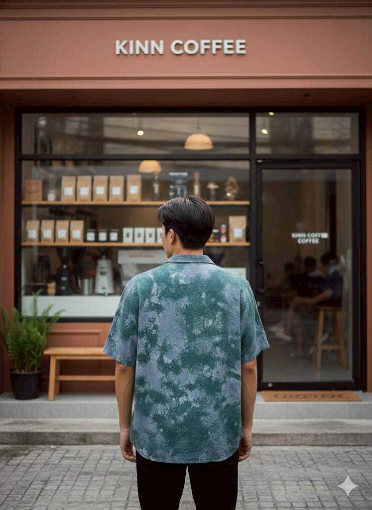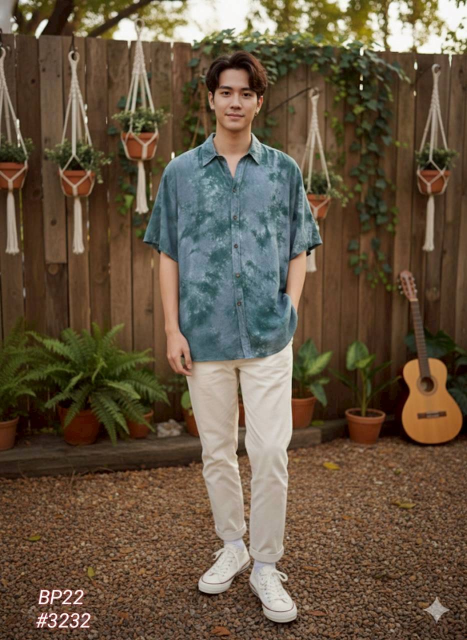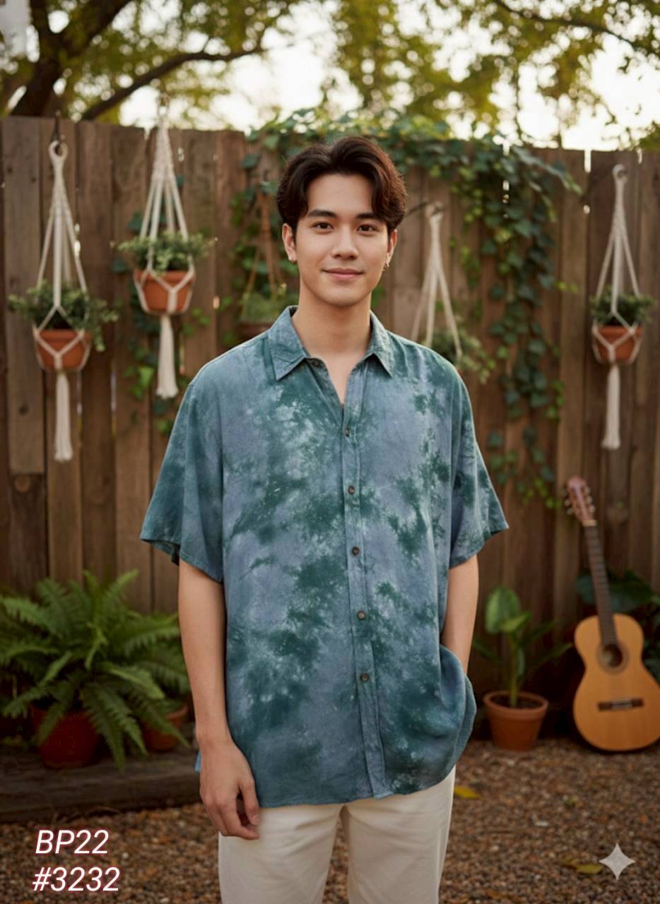 BP22-冰絲超帥折領排扣短袖上衣(男女可穿)-綠灰潑漆#3232/關鍵字:7232/