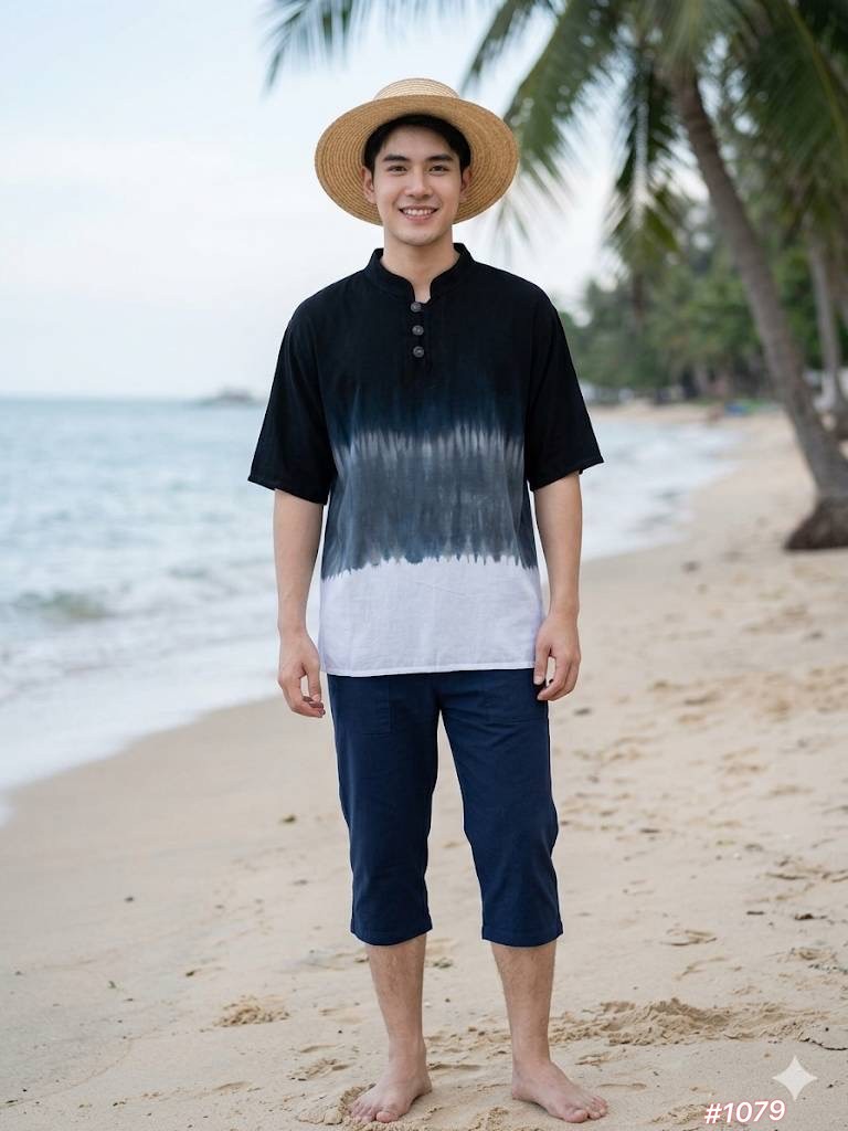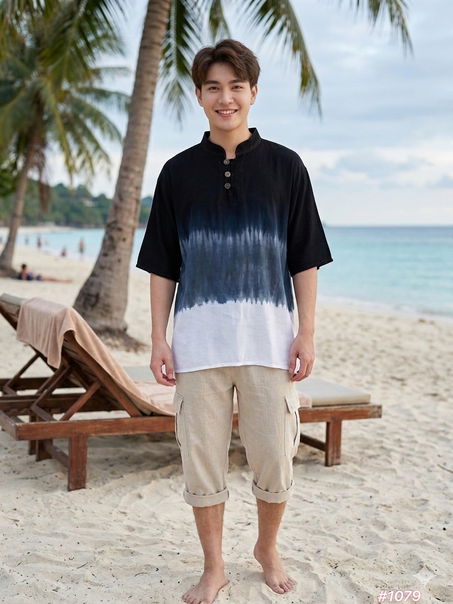 BP24-冰絲中式三扣領短袖上衣(男女可穿)#1079/關鍵字:3235