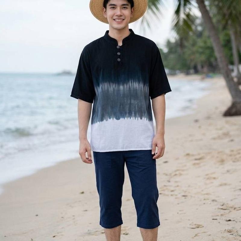 BP24-冰絲中式三扣領短袖上衣(男女可穿)#1079/關鍵字:3235