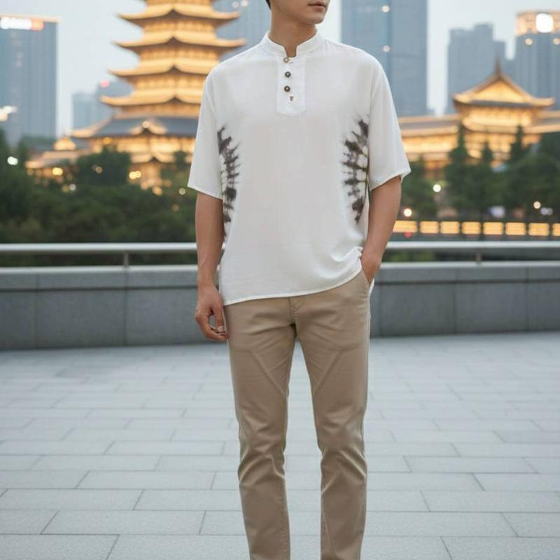 BP24-冰絲中式三扣領短袖上衣(男女可穿)#10912/關鍵字:7745/