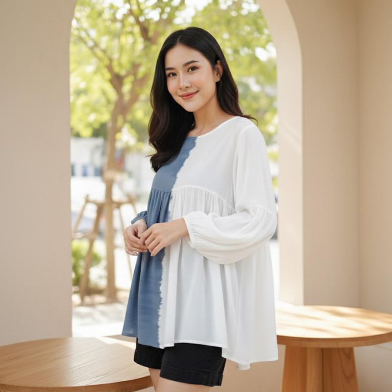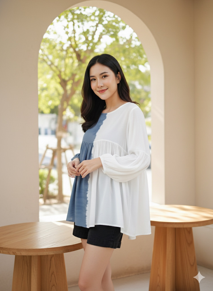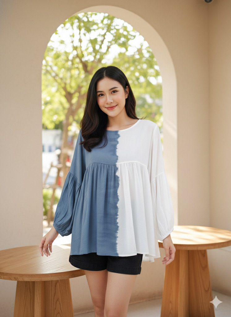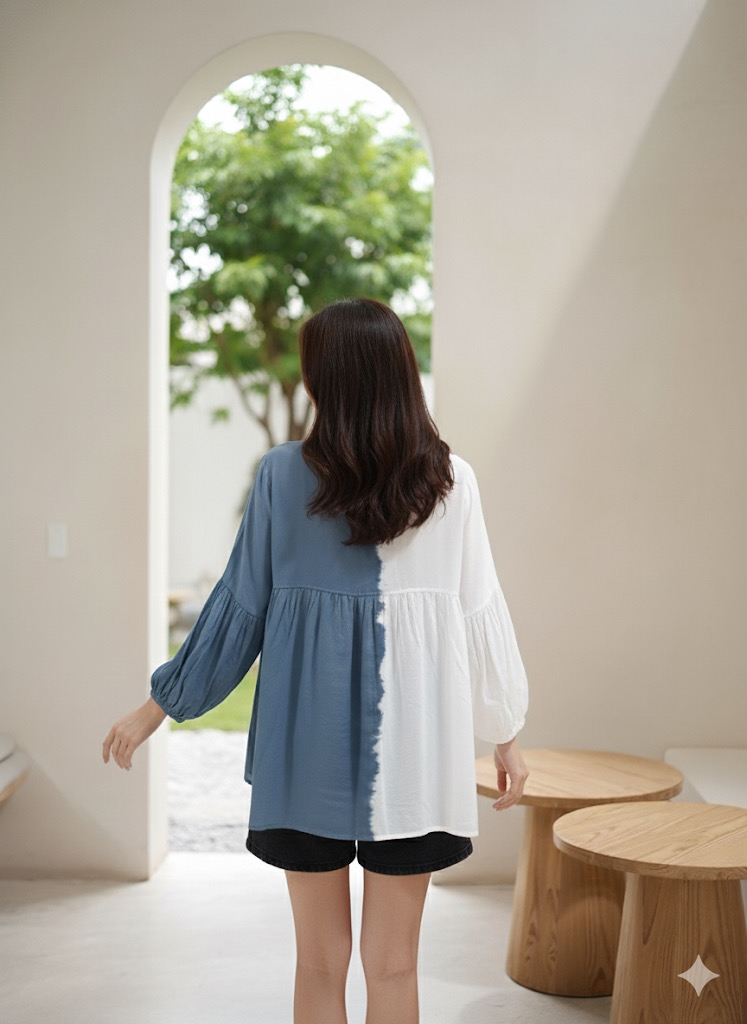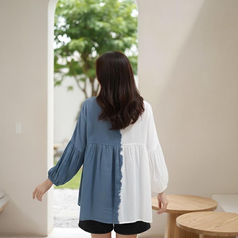 .燈籠袖+鬆緊袖口,增添柔美線條感