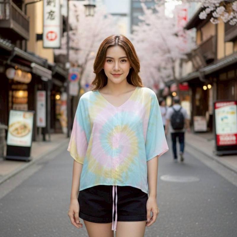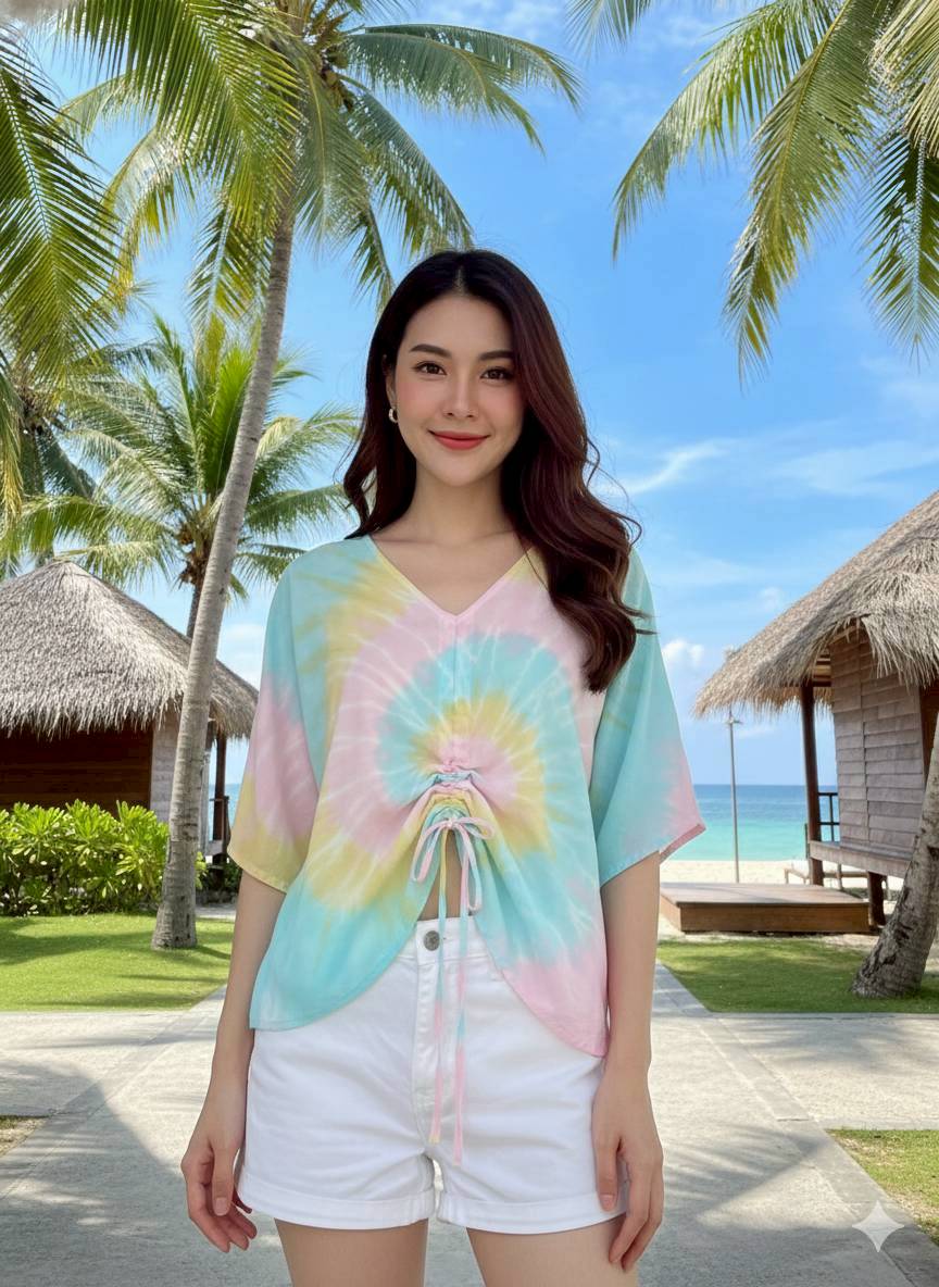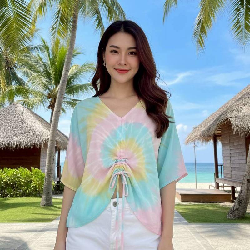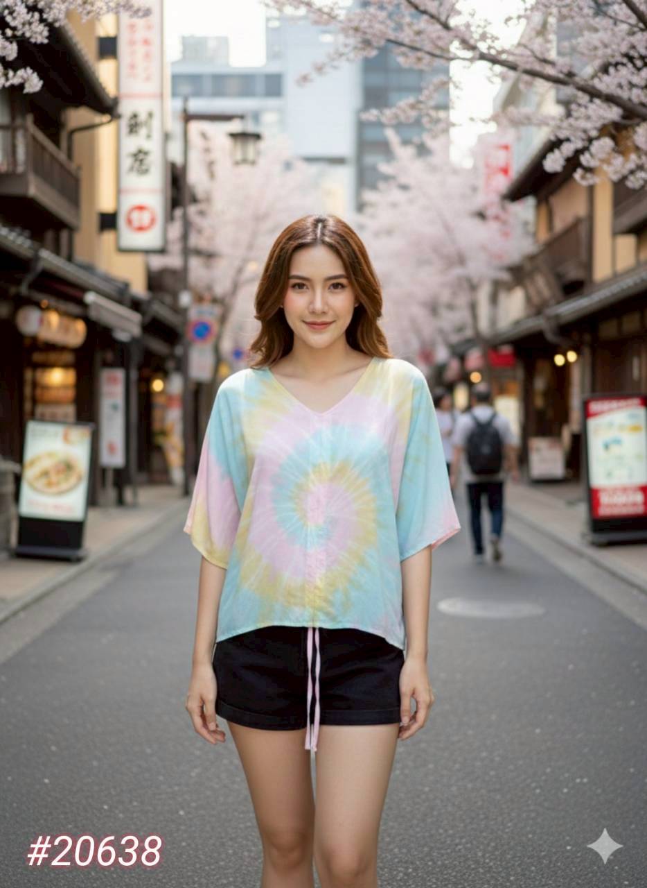 BP71-冰絲短袖中間抽繩上衣#20638/關鍵字:6481/