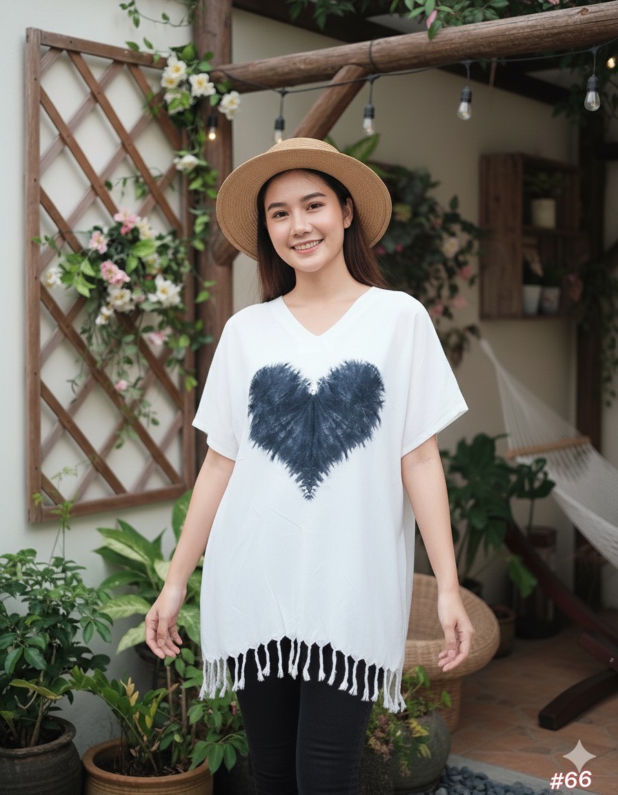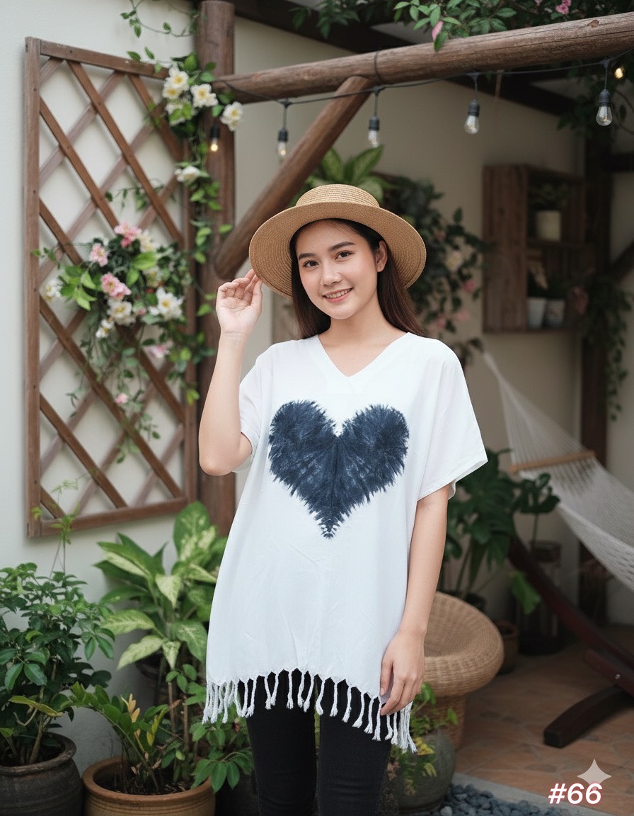 BP65-冰絲V領流蘇短袖上衣#66/關鍵字:6718/