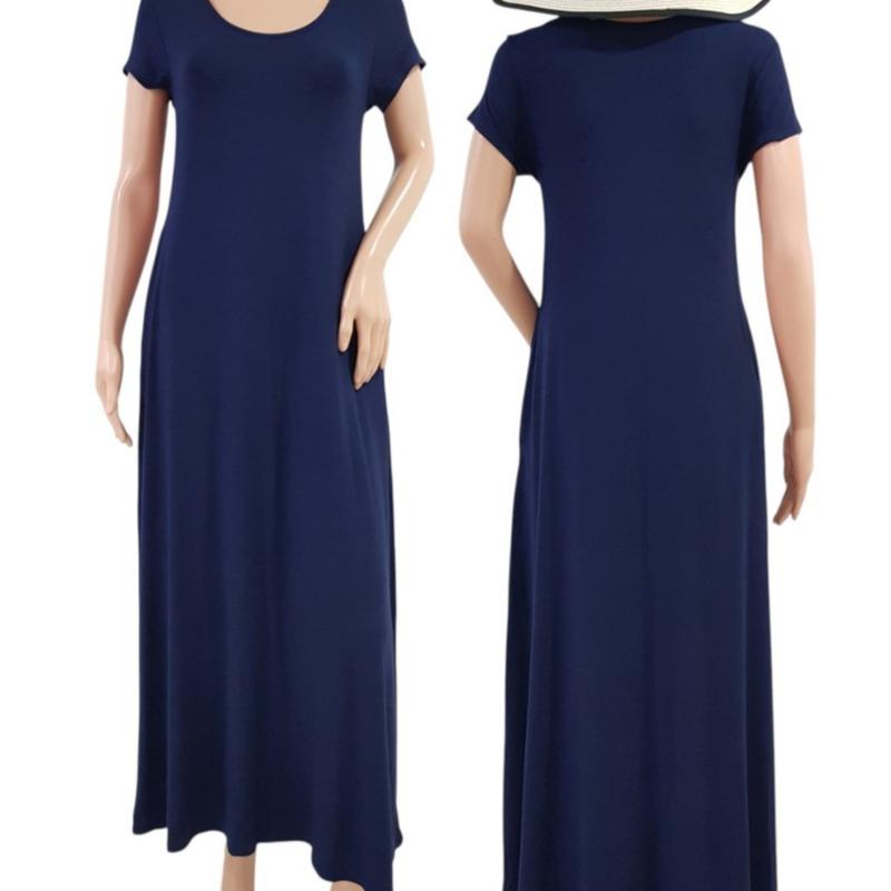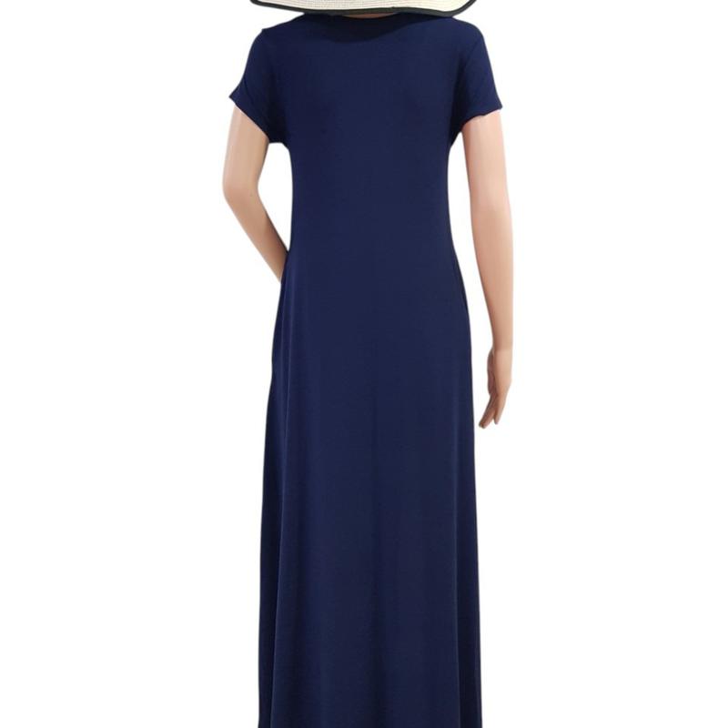 彈性棉短袖洋裝-深藍色(有口袋)#25606/關鍵字:1175/