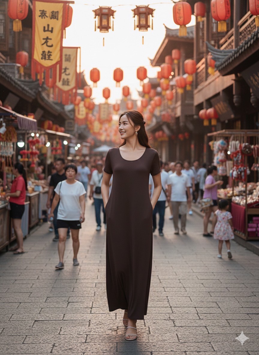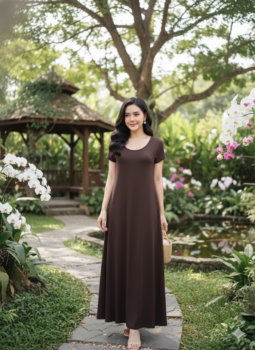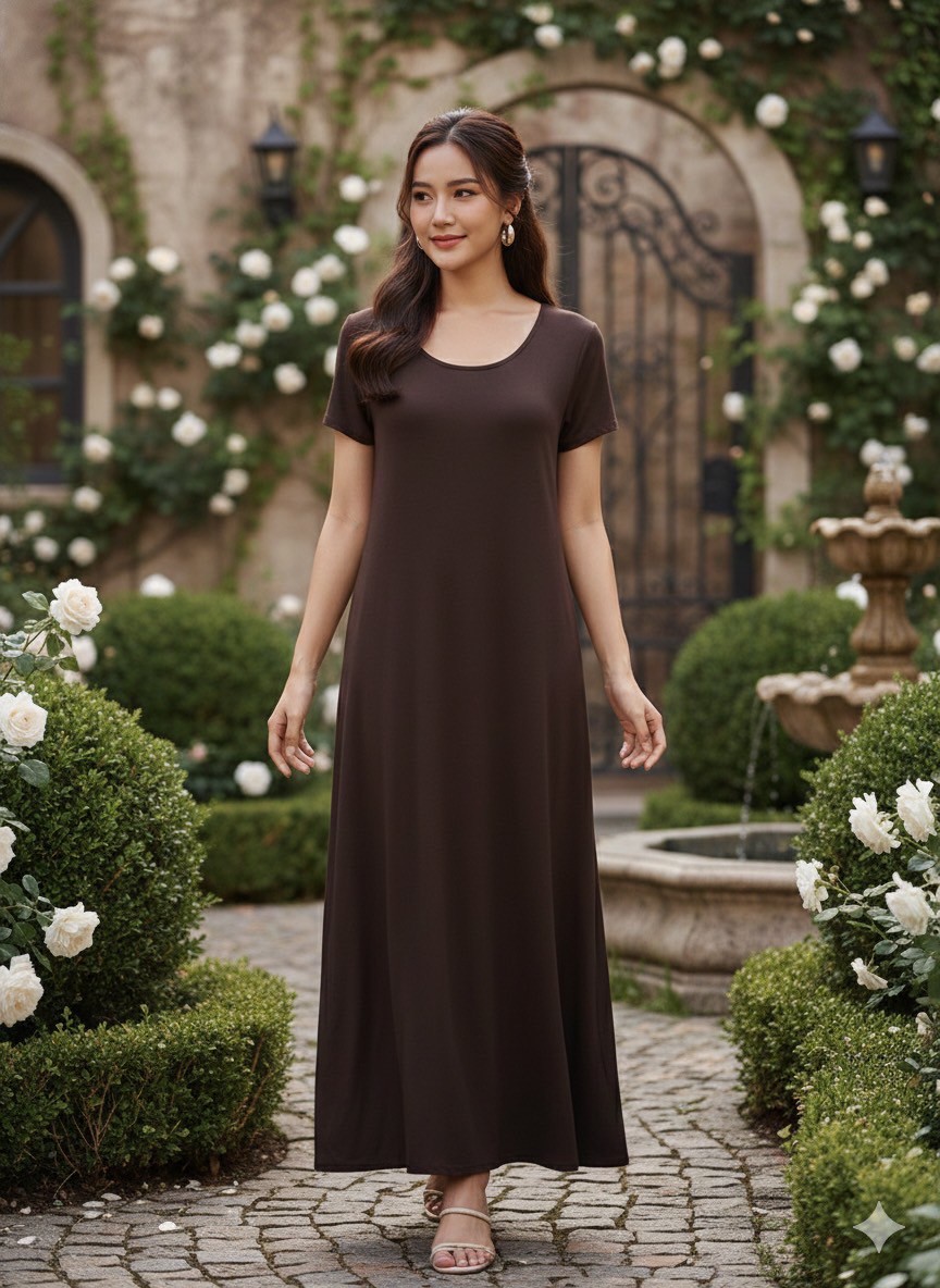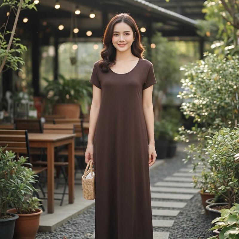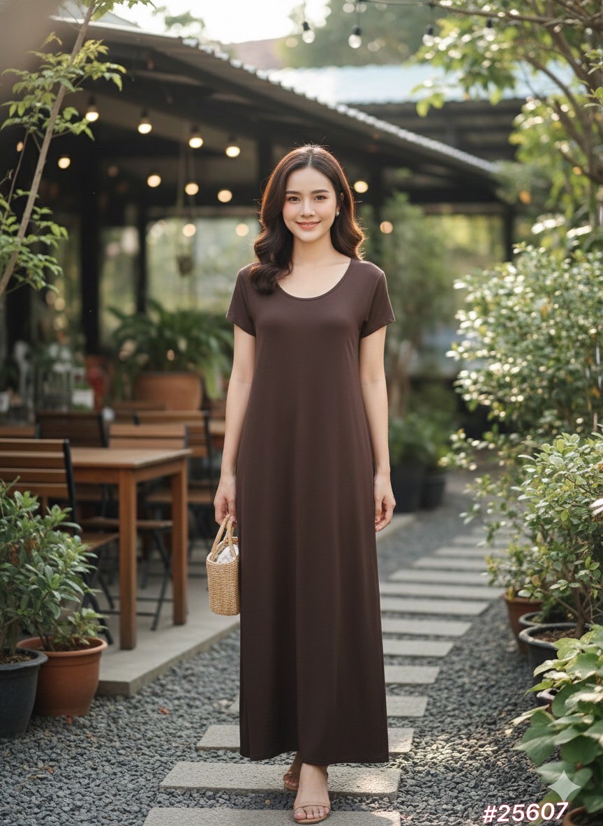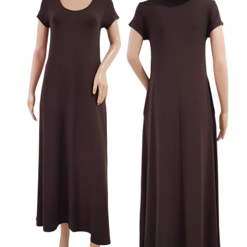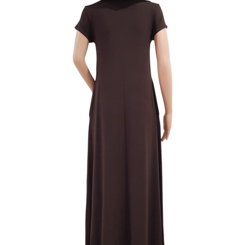 彈性棉短袖洋裝-深咖啡色(有口袋)#25607/關鍵字:1177/