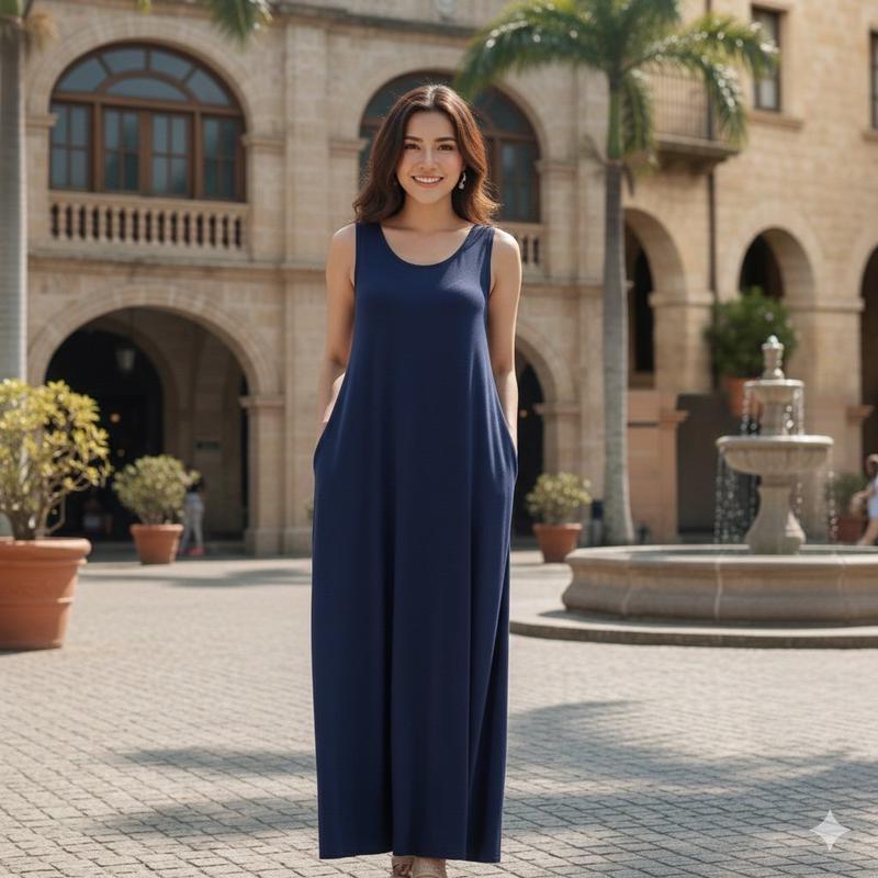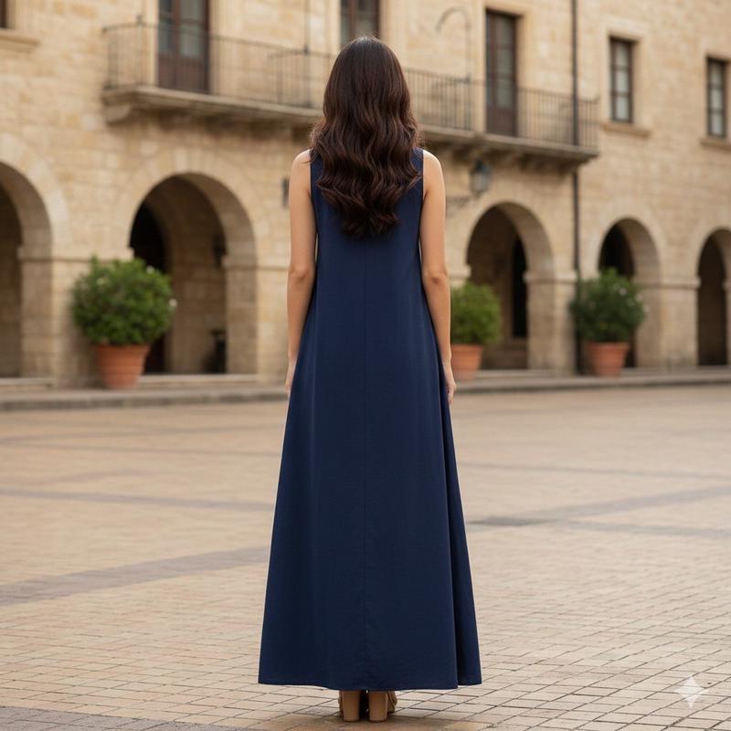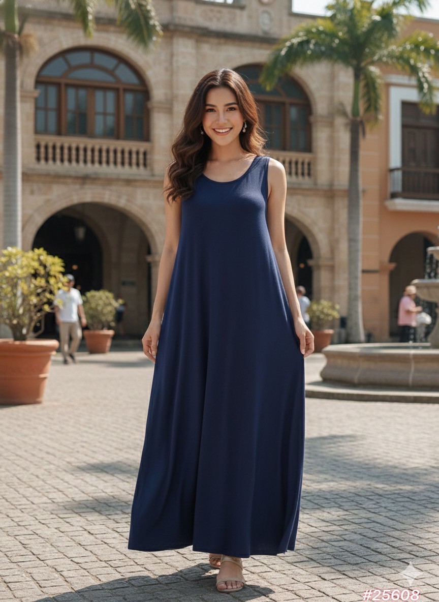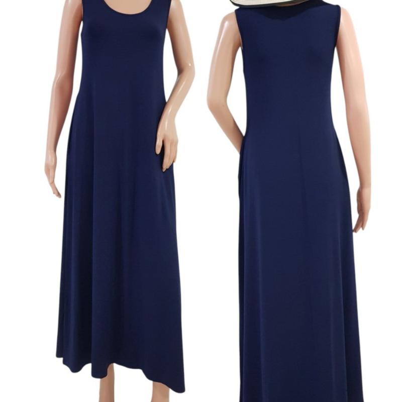 彈性棉長無袖洋裝-深藍色(有口袋)#25608/關鍵字:1180/