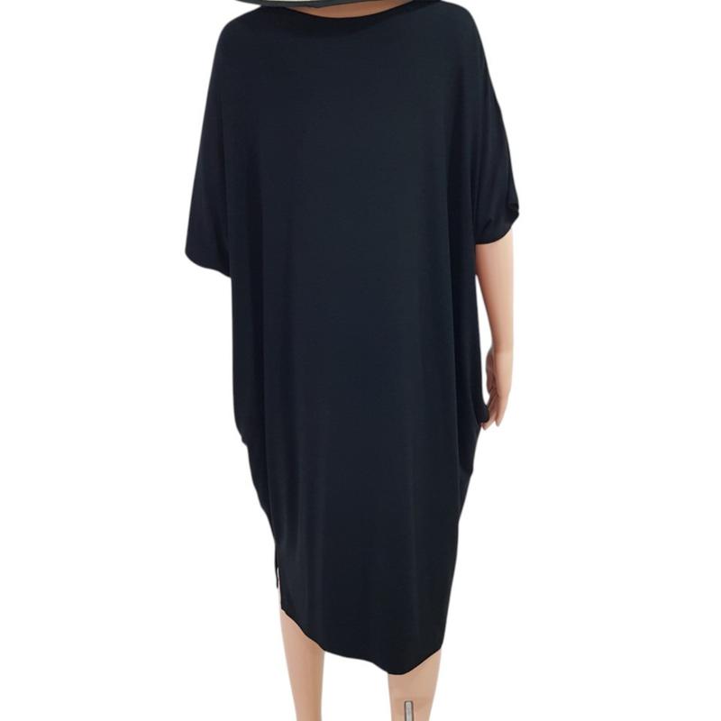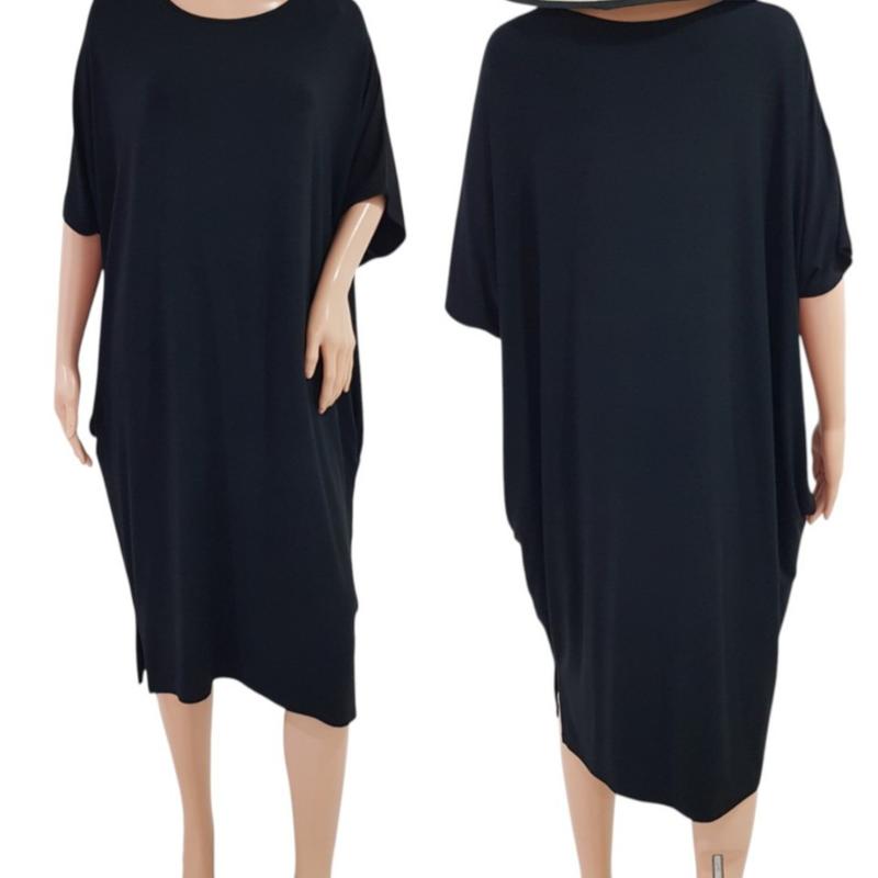 彈性棉大全碼短袖洋裝-黑色(有口袋)#25404/關鍵字:444/