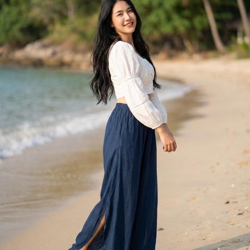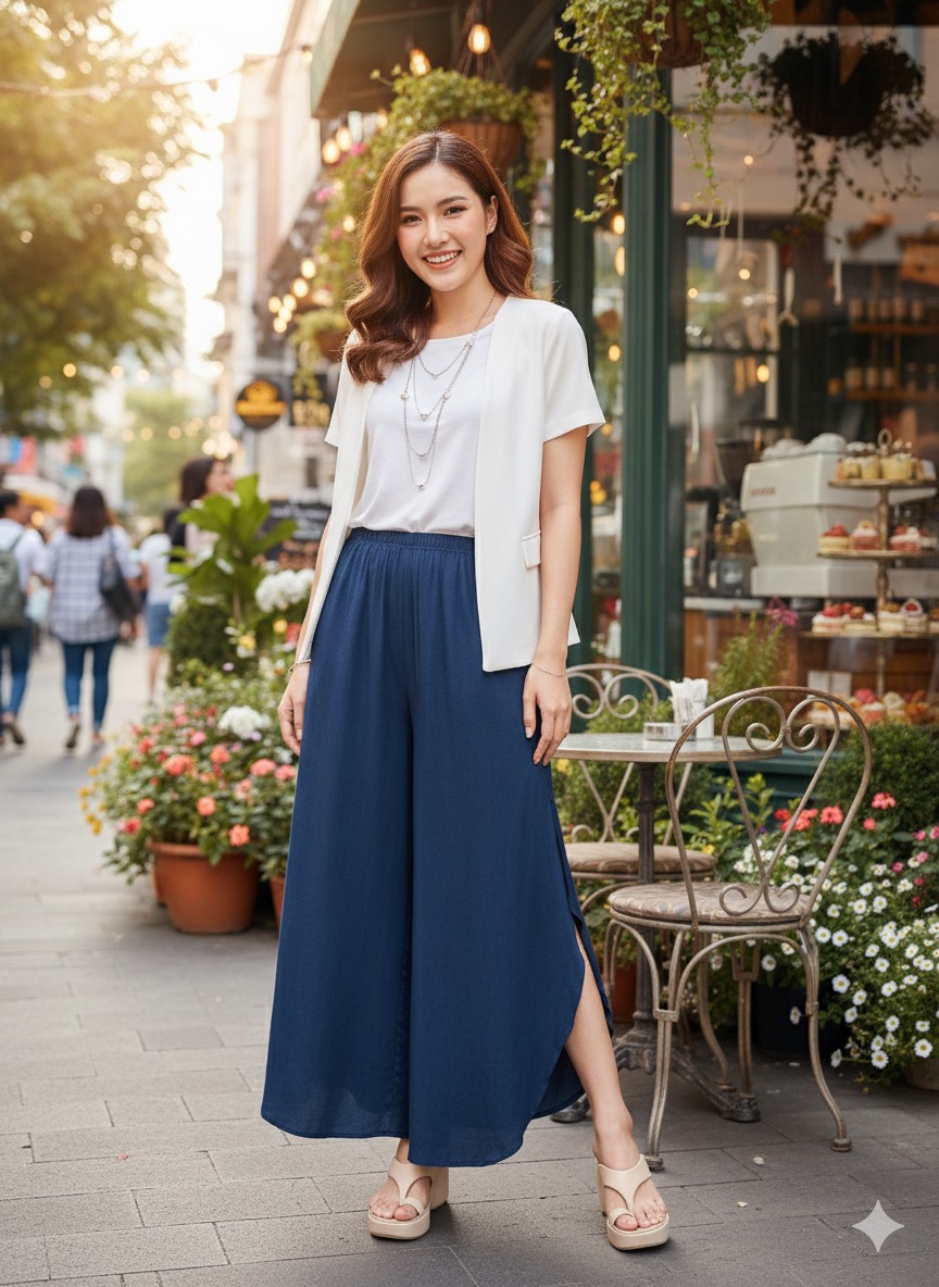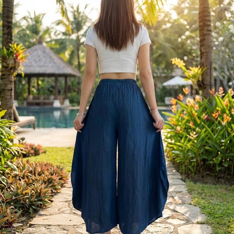 八角剪裁結合自然彩染,打造出走動間有層次、有流動感的時尚風格,低調卻非常吸睛。 💎細節亮點 ✔ 八角褲版型:立體剪裁,修飾腿型更顯瘦 ✔ 側邊開衩設計:走路帶風,隱約露腿更有女人味 ✔ 高腰鬆緊設計:包覆小腹,穿起來舒服不勒 ✔ 寬褲剪裁:遮肉顯瘦,任何身形都能駕馭 ✔ 彩染設計:每件都有獨特色澤,質感滿分 🌿材質特點 ✔ 冰絲材質:涼感透氣,夏天穿超舒服 ✔ 輕盈垂墜感 → 走路自然飄逸 ✔ 不悶熱、不黏身 → 高溫天氣首選 ✔ 柔軟親膚 → 久穿也舒適 👗適合場合 ✔ 日常外出、逛街穿搭 ✔ 旅遊拍照超上鏡 ✔ 約會、聚餐有氣質 ✔ 上班也能穿的舒適時尚 ✔ 度假風穿搭必備 ✅尺寸(平量):腰圍28-56cm.臀圍67cm. 褲長95-100cm. ✅材質;冰絲 ✅清洗方式:不褪色,不用再另外浸泡或定色,可直接下洗衣機清洗(建議放洗衣袋) ✅產地:泰國