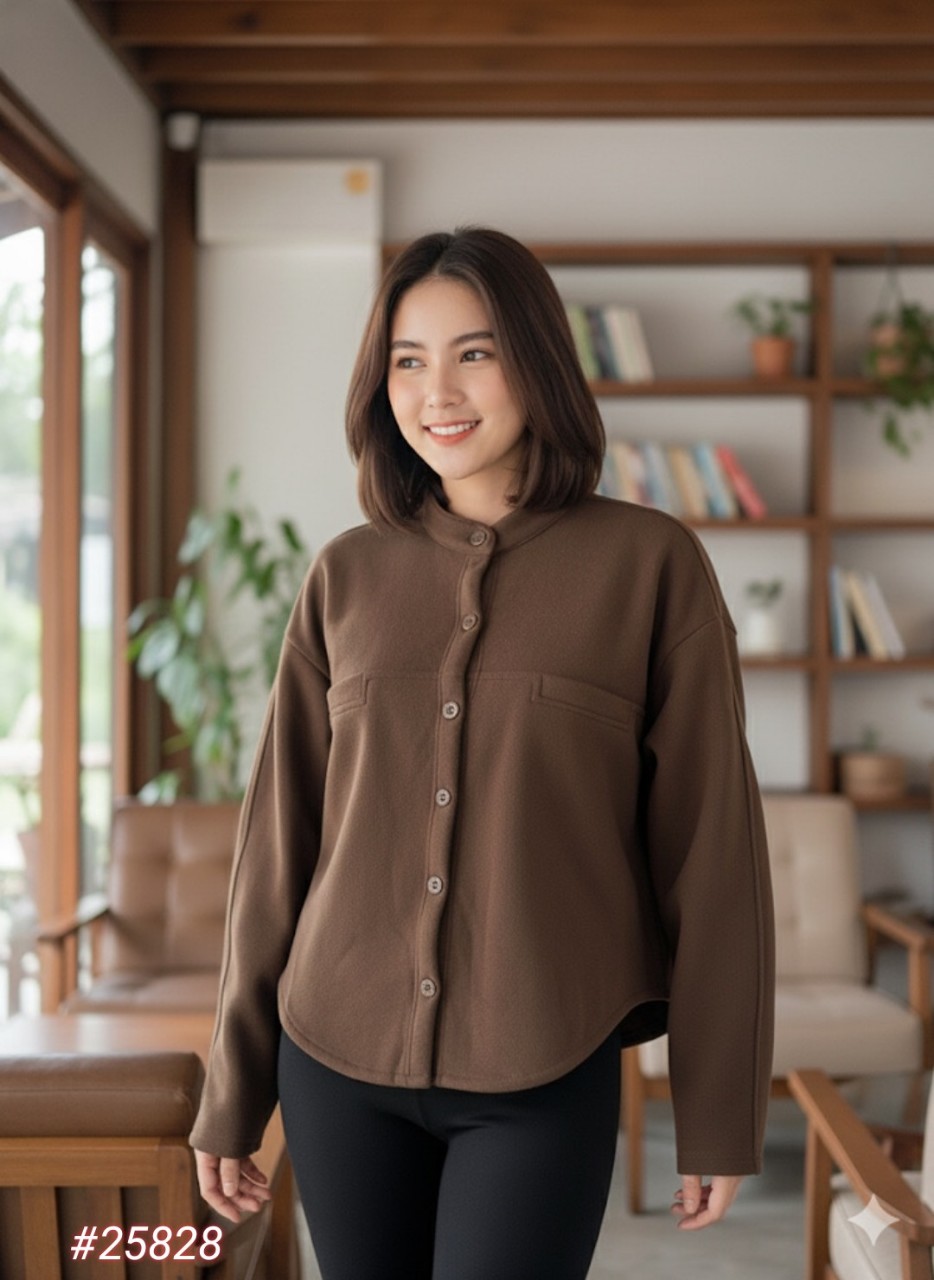 <無印感穿搭>立領德絨感襯衫外套|咖啡色#25828/關鍵字:4573/