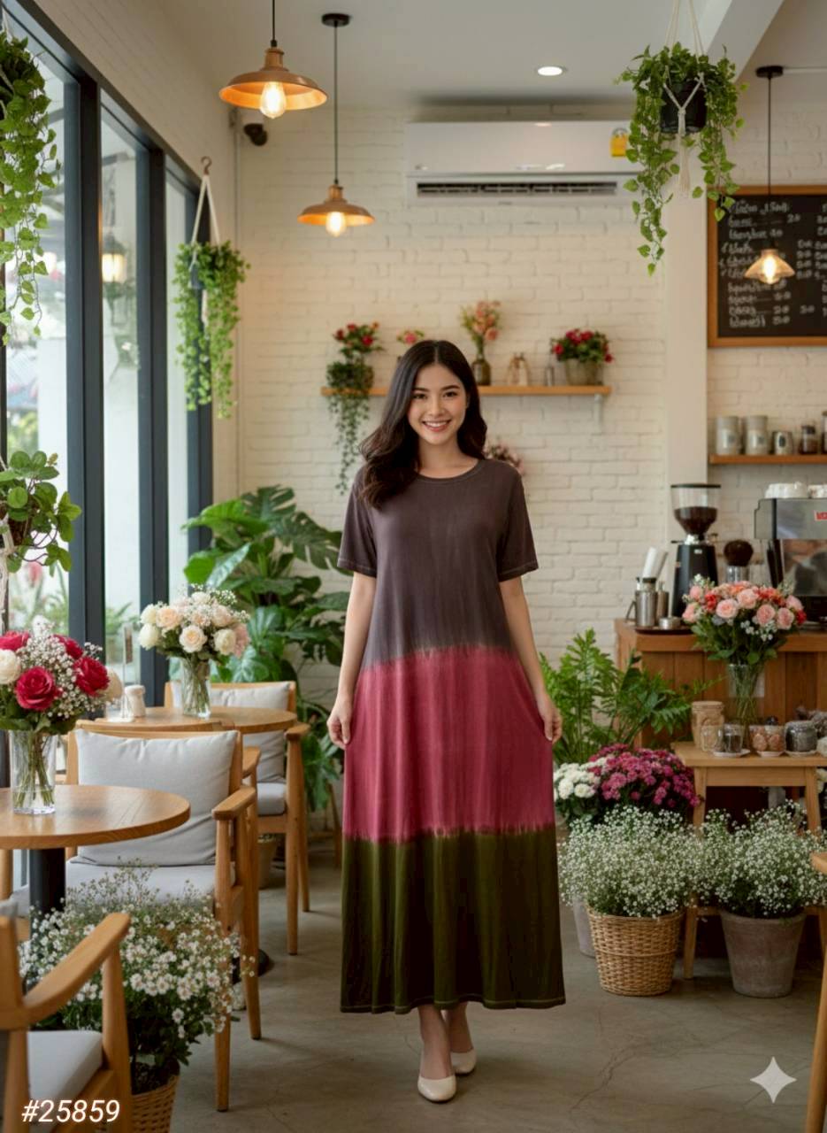 彩染彈性棉短袖洋裝#25859/關鍵字:5222/