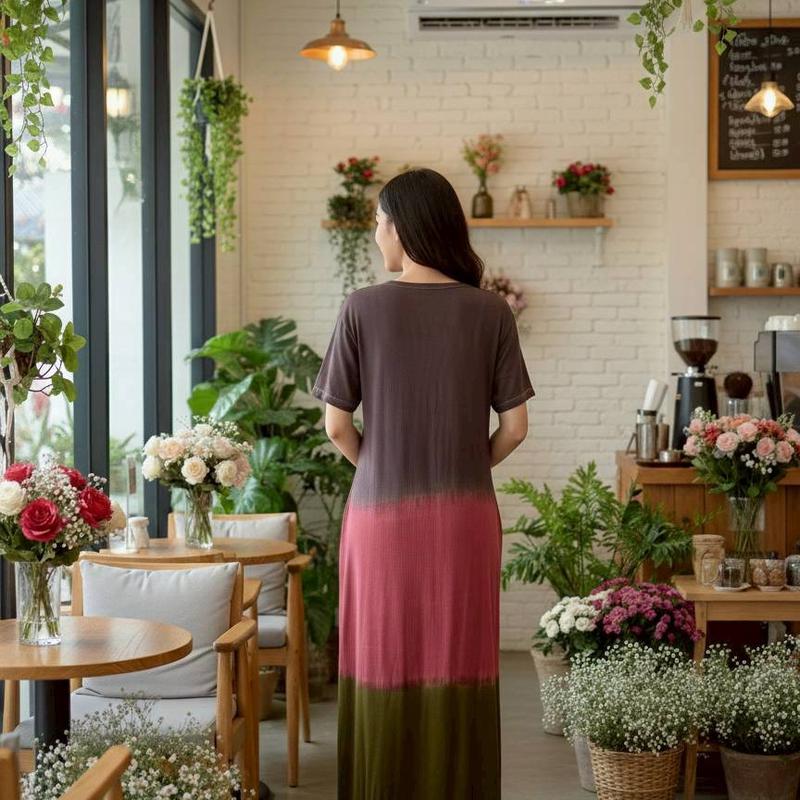 彩染彈性棉短袖洋裝#25859/關鍵字:5222/