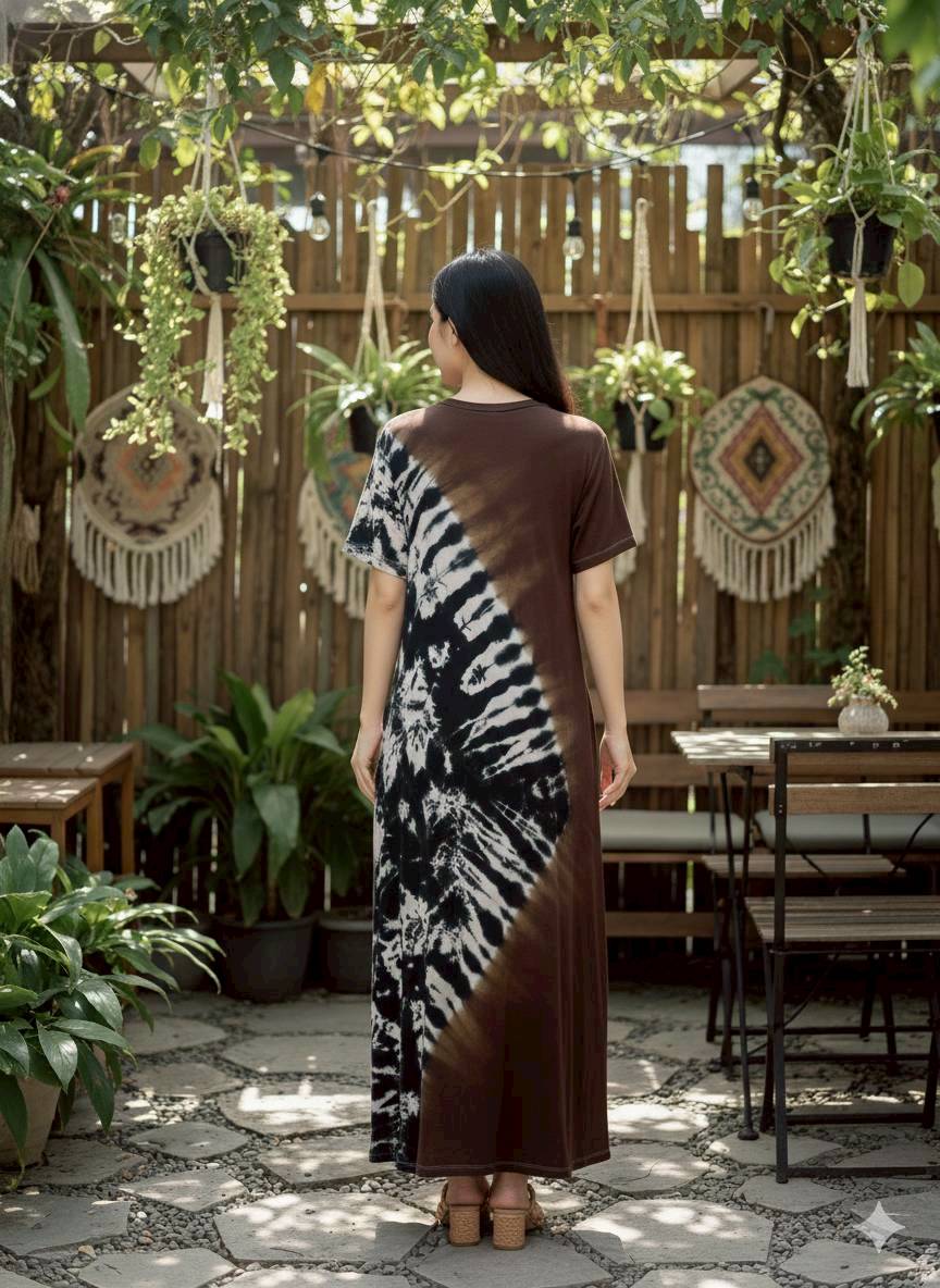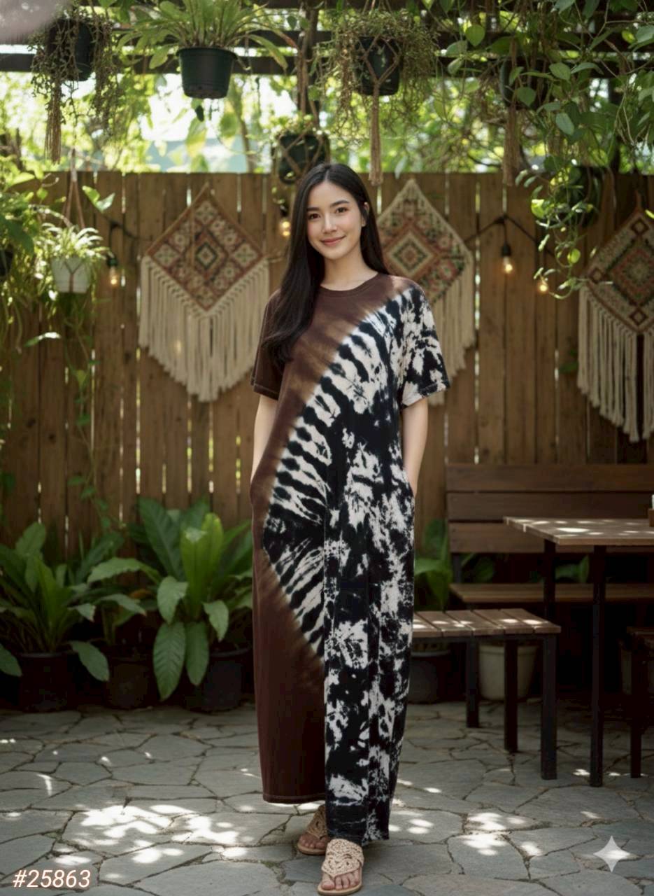 彩染彈性棉短袖洋裝#25863/關鍵字:5214/