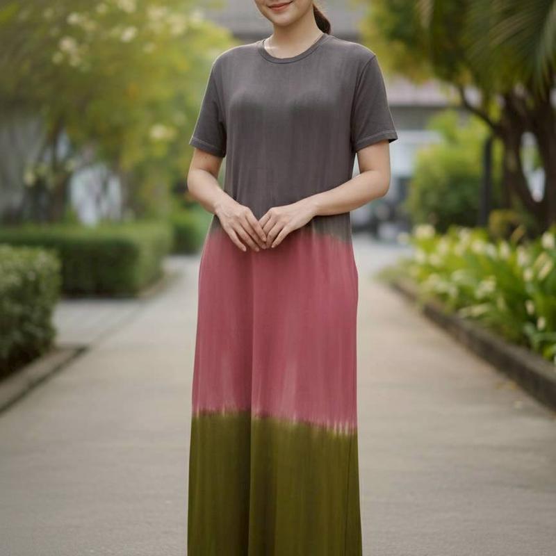 彩染彈性棉短袖洋裝#25860/關鍵字:5221/