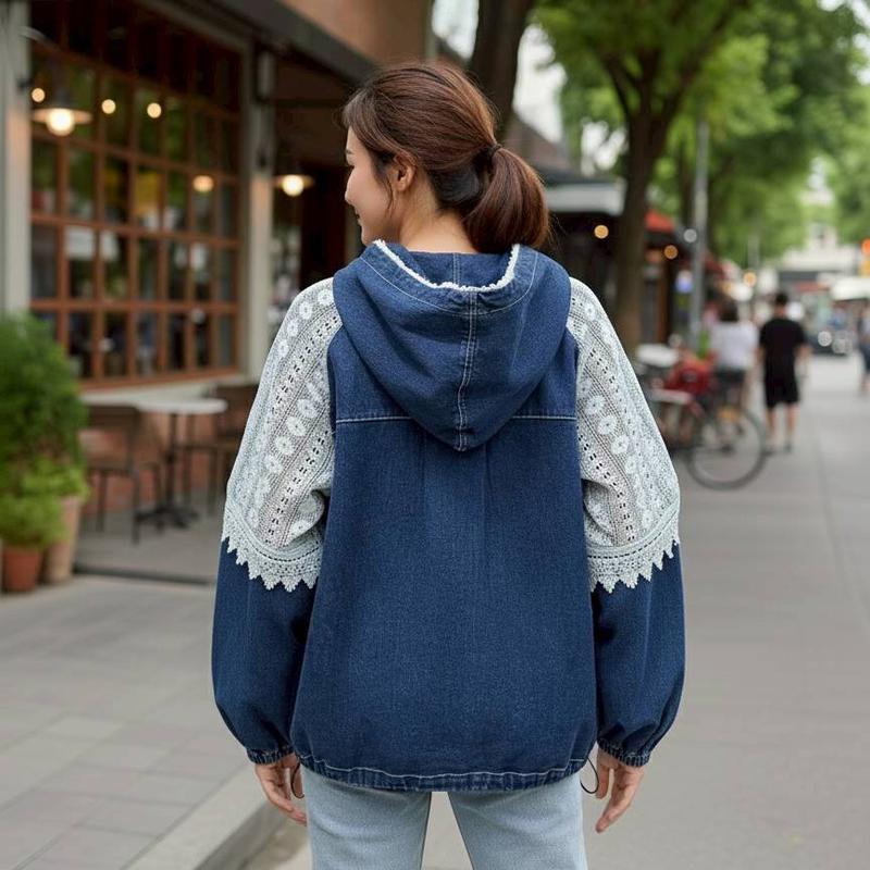 <無印感穿搭>蕾絲拼接連帽外套|丹寧藍#25910/關鍵字:2585/