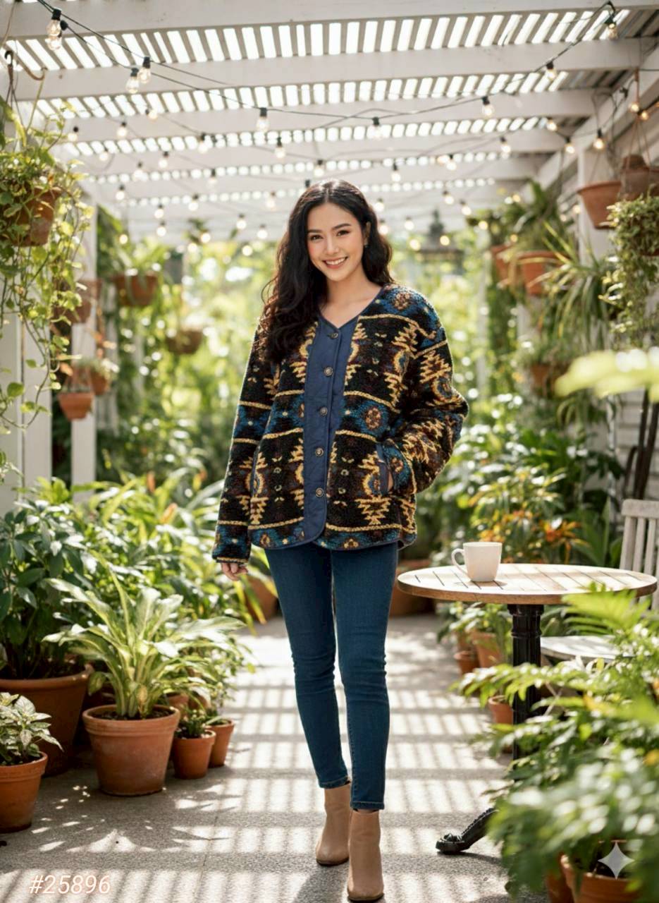 <無印感穿搭>雙面穿民族風厚絨外套|暮色印地藍#25896/關鍵字:5216/