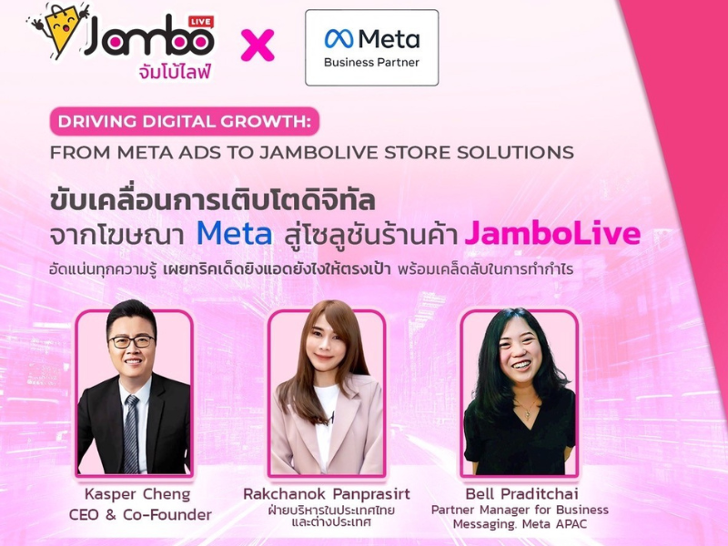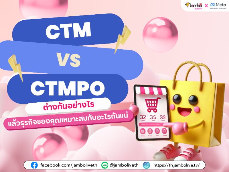 ซึ่งตอนนี้ทั้ง 2 ฟีเจอร์โฆษณาใหม่นี้ ควรใช้พ่วงกับระบบการทำงานหลังบ้าน และยิ่งตัว Facebook Ads – Click to message (CTM, CTX) เนี่ย ยิ่งต้องมีตัวช่วยเป็นระบบดูดออเดอร์ ที่เป็นพาร์ทเนอร์กับ Meta – Facebook ซึ่ง จัมโบ้ไลฟ์ ก็เป็นหนึ่งในพาร์ทเนอร์เช่นกันจ้า !