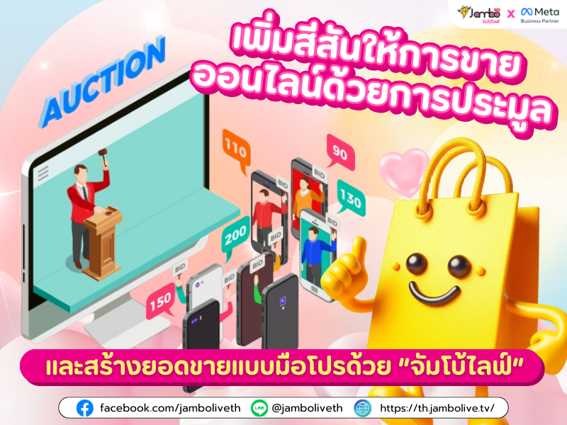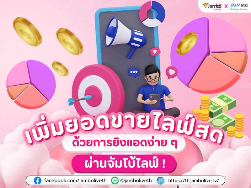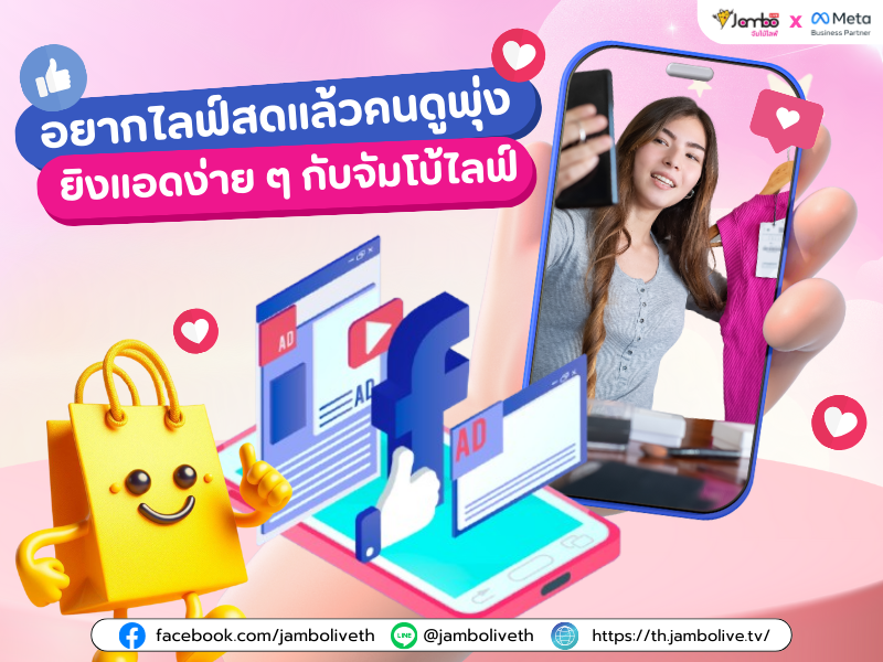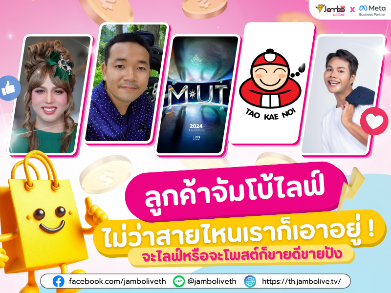 หากสนใจโฆษณาผ่านไลฟ์ เพจ และโพสต์ขายของ ติดต่อจัมโบ้ไลฟ์ได้เลยน๊า Facebook jamboliveth