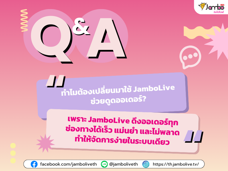 การทำธุรกิจออนไลน์บางทีก็งงและสับสน เพราะการจัดการไม่เป็นระบบ เดียวทำอันนู้นทีอันนี้ทีงงไปหมด ทำให้ข้อมูลตกหล่นสูญเสียรายได้ ดังนั้นพ่อค้าแม่ค้าออนไลน์ส่วนใหญ่ โดยเฉพาะสายไลฟ์สด คงจะใช้เวลาเยอะไปกับการจัดการออเดอร์ที่มีเข้ามาอย่างทั้งเก่าและใหม่ การที่พ่อค้าแม่ค้าต้องใช้เวลามานั่งจัดการออเดอร์นั้น อาจจะทำให้เสียโอกาสในการขายสินค้าไป ดังนั้นการเลือกใช้ระบบจัดกาาหลังบ้านที่มีประสิทธิภาพอย่าง JamboLive ระบบดูดออเดอร์ สามารถช่วยลดภาระงานในการจัดการร้านค้าออนไลน์ได้อย่างมีประสิทธิภาพ ทำให้แอดมินและทีมงานทำงานได้อย่างเป็นระบบมากยิ่งขึ้น คนซื้อก็แฮปปี้คนขายก็แฮปปี้