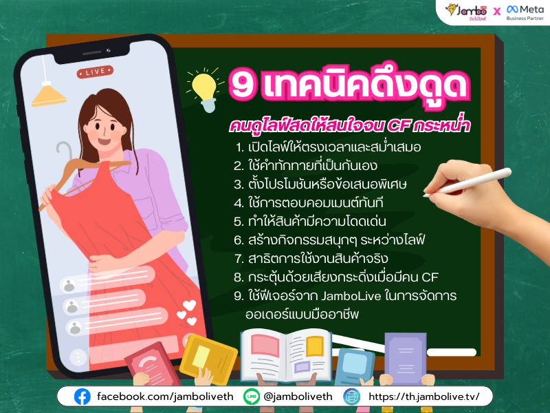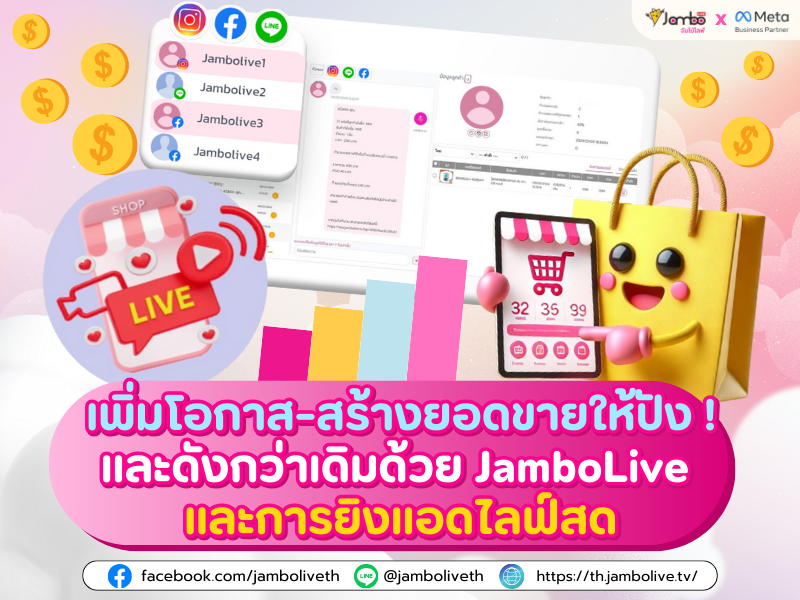 ดูเพิ่มเติม...เป็นหนึ่งในประเด็นฮิตที่น่าสนใจในวงการพ่อค้าแม่ค้าออนไลน์รุ่นใหม่ สำหรับคำถามที่ว่า ไลฟ์สดหน้าเพจ หรือ ไลฟ์หน้า Facebook ส่วนตัว วิธีไหนจะเปิดการมองเห็นได้เยอะกว่ากัน? จัมโบ้ไลฟ์พร้อมจัดเต็มบอกเคล็ดลับการไลฟ์สดว่า "การไลฟ์ผ่านหน้าเพจ" นั้นมียอดการมองเห็นที่เยอะกว่าแน่นอน ว่าแต่มันมีสาเหตุมาจากอะไรล่ะ มาดูกัน 1. ช่วยเปิดการมองเห็นของไลฟ์ เพิ่มยอดคนดูได้เยอะขึ้น แน่นอนว่าหลายคนอาจจะเคยเห็นฟังชั่นของ Facebook ที่เรียกว่า Watch ผ่านตากันมาบ้าง ซึ่งฟีเจอร์นี้เป็นการรวบรวมการถ่ายทอดสดจากพ่อค้าแม่ค้าทั่วประเทศบนแพลตฟอร์มเฟสบุ๊คไว้ในที่เดียวกัน แล้วถ้าอยากเข้าร่วมด้วยต้องทำยังไงล่ะ คำตอบก็คือ "การไลฟ์สดผ่านเพจ" ของเรานั่นเอง เพราะจะมีแค่พ่อค้าแม่ค้าที่ไลฟ์ผ่านเพจเท่านั้นจึงจะถูกทาง Facebook รีวิวและอนุญาตให้สามารถเข้ามาอยู่ในหมวดนี้ได้ ซึ่งการจะไลฟ์ผ่านเพจได้นั้นไม่ใช่เรื่องง่ายเลยนะ เราจำเป็นต้องเตรียมความพร้อมในหลาย ๆ ด้าน รวมไปถึงการหาระบบดูดออเดอร์และระบบช่วยจัดการหลังบ้านที่มีประสิทธิ์ภาพอย่าง JamboLive ที่สามารถช่วยให้พ่อค้าแม่ค้าออนไลน์ขายของได้อย่างมีประสิทธิภาพมาขึ้น หากเราสามารถทำได้และพร้อมที่จะท้าทายตัวเอง ก็มั่นใจได้ว่าเราจะสามารถเป็นส่วนหนึ่งของก้าวสำคัญในเส้นทางสู่ความสำเร็จของพ่อค้าแม่ค้าออนไลน์รุ่นใหม่บนแพลตฟอร์มชั้นนำอย่าง Facebook ได้แน่นอน 2. มีใช้ฟังก์ชันและฟีเจอร์ของเฟสบุ้คต่าง ๆ ในทางการค้า อย่าลืมว่าโซเชี่ยลมีเดียมีการปรับเปลี่ยนฟังก์ชันกับผู้ใช้งานอยู่สม่ำเสมอทั้งในฝั่งร้านค้าและลูกค้า โดยเฉพาะอย่างยิ่งกับเพจเฟสบุ๊ค เพื่อให้กระตุ้นให้พ่อค้าแม่ค้าออนไลน์มีปฏิสัมพันธ์กับลูกค้าอย่างราบรื่นและความสนุกสนาน สิ่งที่พ่อค้าแม่ค้าออนไลน์ควรจะทำ คือการศึกษาและการเลือกใช้ฟังก์ชันที่เหมาะสมสำหรับธุรกิจนั่นเอง เพื่อให้สามารถแสดงออกจุดขายที่เข้ากับตัวธุรกิจและแนวทางของพ่อค้าแม่ค้าสมัยใหม่อย่างเหมาะสมค่ะ และที่สำคัญอย่าลืมนึกถึงความสำคัญของฟีเจอร์การชำระเงินด้วยนะ หากคุณต้องการให้เพจหรือการค้ามีความน่าเชื่อถือและเป็นที่ไว้วางใจจากลูกค้า และส่งผลให้เกิดการกระตุ้นยอดขาย การเลือกใช้รูปแบบการจ่ายเงินที่สะดวกและปลอดภัยเป็นสิ่งสำคัญ ซึ่งสิ่งนี้เองจะสามารถสร้างความเชื่อมั่นและเพิ่มความพึงพอใจของลูกค้าให้กับการทำธุรกิจออนไลน์ของคุณอย่างแน่นอนค่ะ 3. ช่วยขยายกลุ่มฐานลูกค้าหรือสเกลร้าน การใช้เพจบนเฟสบุ๊คก็เปรียบเสมือนหน้าร้านในย่านการค้า 