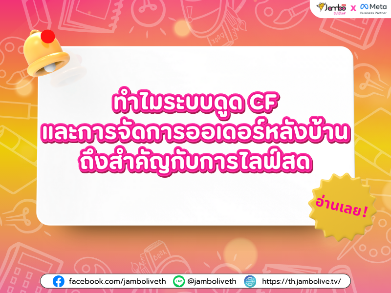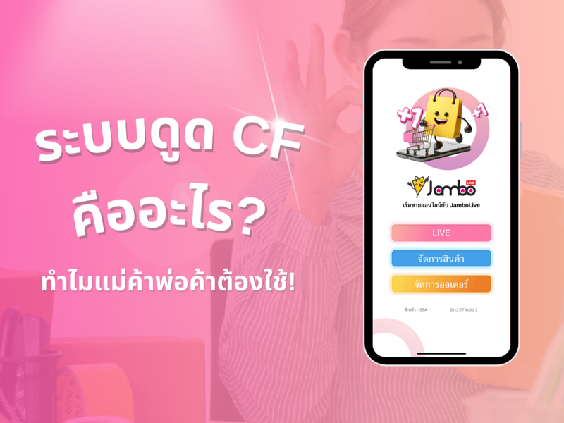 เคยสงสัยกันไหม เวลาไปดูไลฟ์ของร้านค้าออนไลน์ร้านอื่นๆทำไมเค้าขายยอดขายพรุ่งปรี๊ด แค่เอาสินค้าออกมาหน้าไลฟ์ พร้อมรหัสสินค้าก็รับยอดได้ง่ายๆ ลูกค้าก็ CF รัวๆ “จดออเดอร์กันยังไง” “ใช้ระบบอะไรจัดการออเดอร์” “รหัสสินค้าคืออะไร” นี่คงเป็นคำถามที่ลอยมาในหัว ของคุณพ่อค้าแม่ค้าตอนไปดูไลฟ์สด หรือ โพสขายของของร้านคู่แข่งร้านอื่นๆเพราะอย่างนั้น วันนีจัมโบ้ไลฟ์จะมาแชร์ว่าระบบดูด CF คืออะไรและข้อดีของการใช้ระบบดูด CF ให้กับทุกคนกันค่ะ!